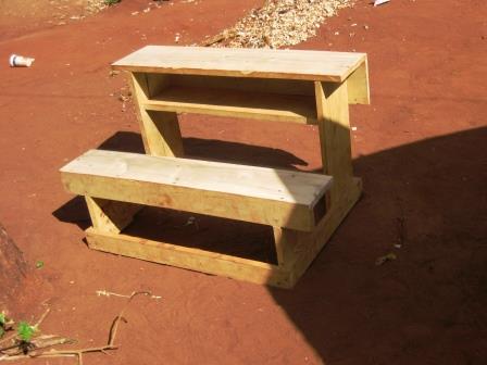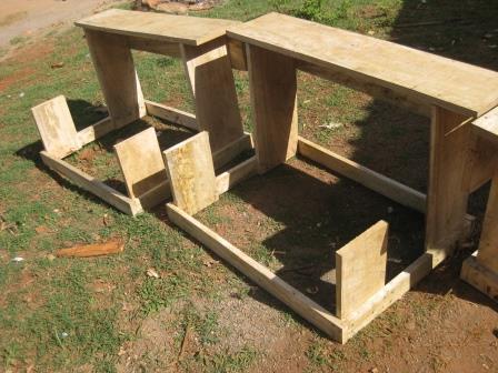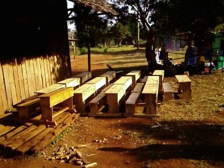 | erste der bestellten Schulbänke | der Rest noch in Arbeit |