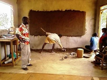 | 2008 1. Schulgebäude mit Toilette ohne Dach | die Tafel ist viel zu klein |