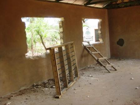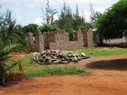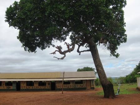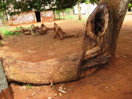 | Neubau Adminblock kurz vor Abreise | April 15: vom Cashewnut-Baum ist ein Stück abgebrochen, der Rest kann aber stehenbleiben |
