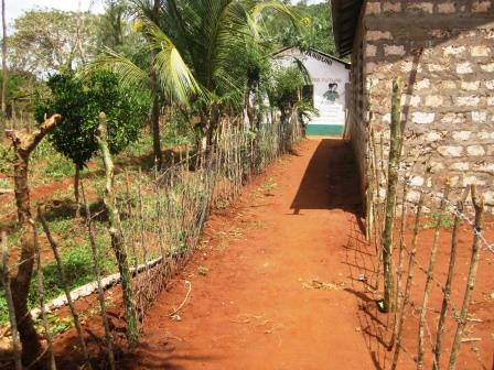 | der neue Schulgarten mit Zaun - sieht toll aus | für jeden Schüler ein Paar Schuhe vom RK Kenia |