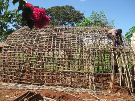 | die Küche muss neu gebaut werden | wiederum mit Gras gedeckt |