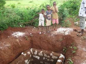 | ausgemauerte Grube für die Toilette | 2010: staatliches Schulgebäude im Bau |
