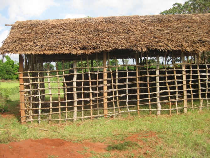 Die Eltern hatten bereits Pfähle bereitgestellt, aber es fehlte ein erfahrener Handwerker für den Bau. Deshalb wurde Emmanuel um Hilfe gebeten. Trudy Schmid unterstützte das Vorhaben mit 500 CHF und das Schulgebäude konnte im Nov. 2009 gebaut werden, ebenso eine Toilette.